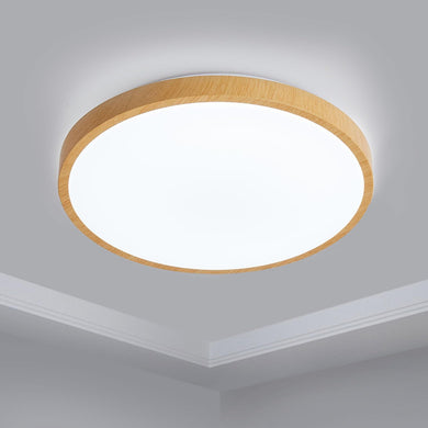 LED Ceiling Light Cold White Flush Mount Ceiling Lamp 34cm Round Wood Effect