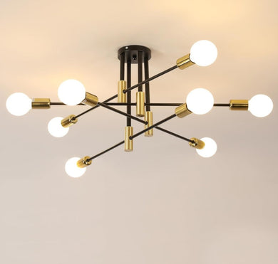 Ceiling Light 8 Lights E27 Modern Chandelier Semi-Flush Mount 90cm Black and Gold