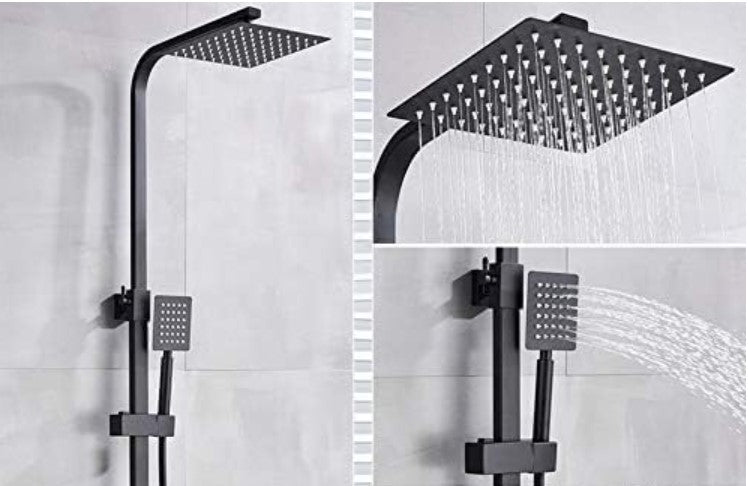 Upgrade your bathroom with this modern and durable adjustable shower system, designed for maximum comfort and flexibility during every shower. Featuring a large square rainfall shower head and a convenient handheld sprayer, this system offers a luxurious spa-like experience in your own home.The height-adjustable main column (74–113 cm) allows you to customize the shower to the ideal position, making it suitable for people of all heights. The ultra-thin 20 cm rainfall head delivers wide water coverage, while the 30 cm extension arm ensures comfortable overhead positioning.Crafted from high-quality materials and finished in elegant matte black, the system is corrosion-resistant, easy to clean, and designed for long-term reliability. Perfect for modern bathrooms, renovations, or complete shower upgrades.