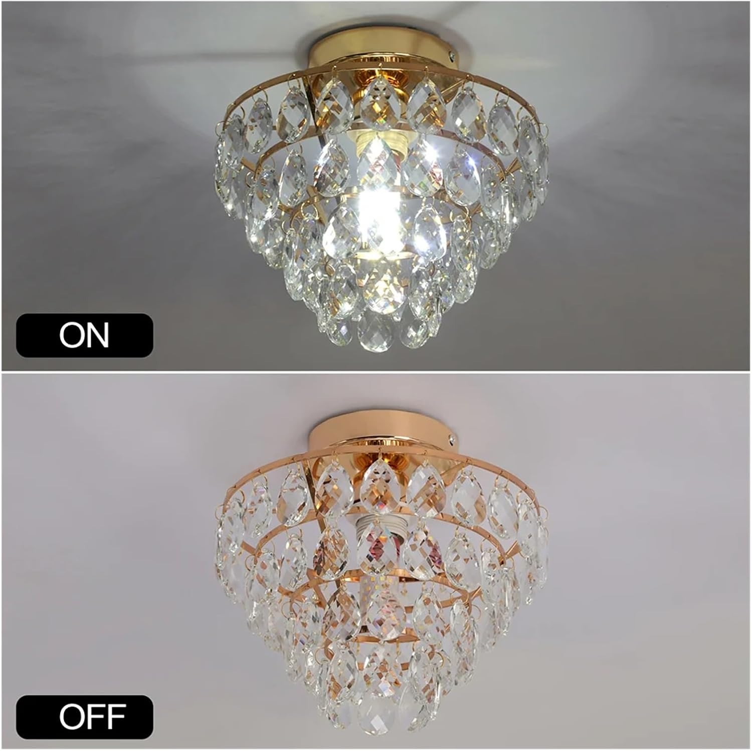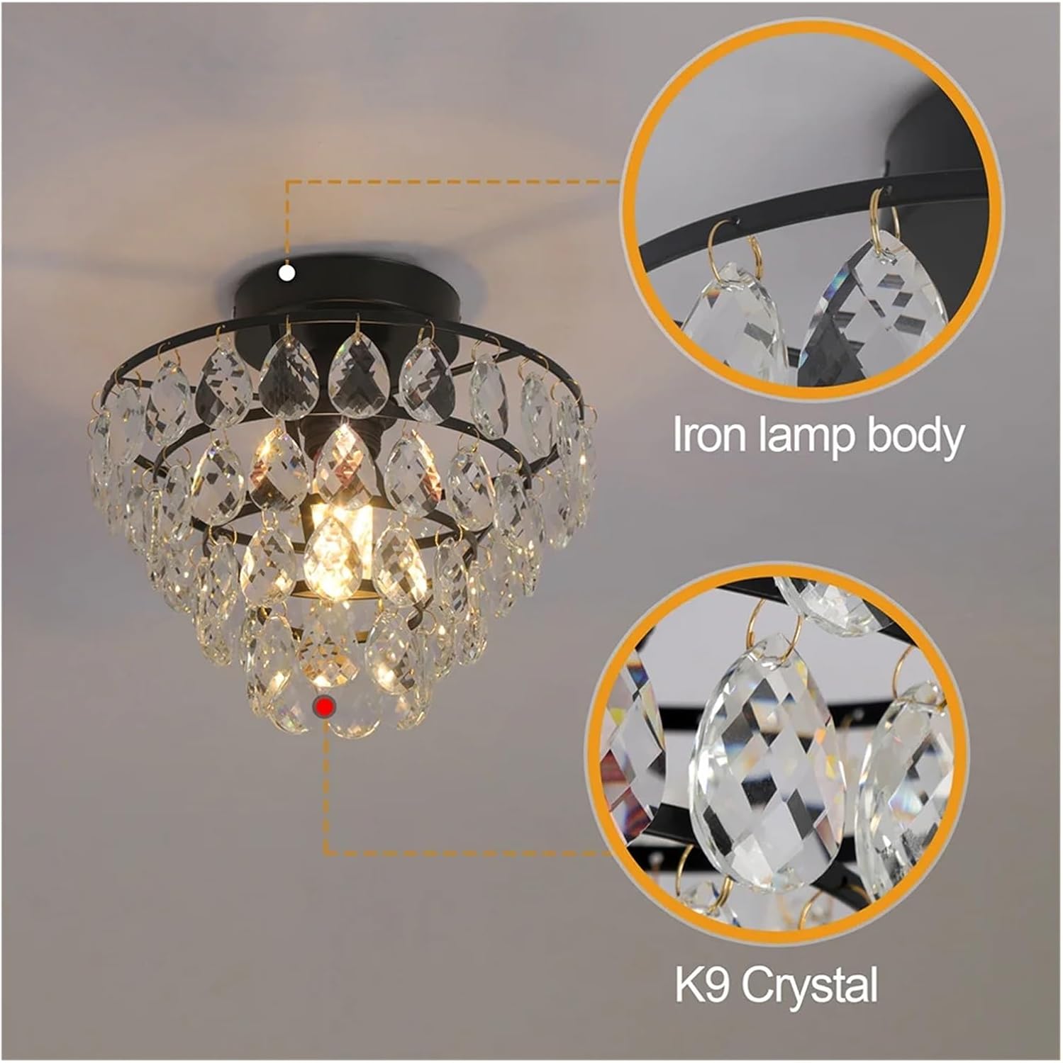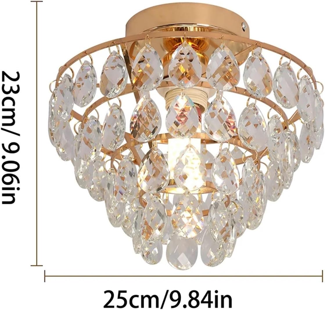 This stylish crystal ceiling light combines modern design with timeless elegance. Featuring a compact metal frame available in gold or black finish, it is adorned with multiple faceted crystal drops that beautifully reflect light and create a warm, luxurious atmosphere. Perfect for living rooms, bedrooms, hallways, or dining areas, this fixture adds a touch of sophistication while providing soft, ambient illumination. Ideal for both contemporary and classic interiors.