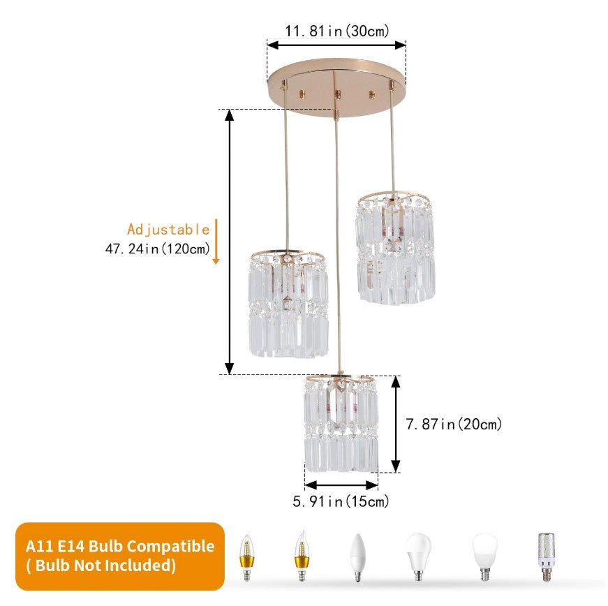 This K9 crystal chandelier is crafted with precision laser cutting, featuring sharp edges and refined detailing that create a stunning visual effect through light refraction. Its elegant and modern design makes it a perfect decorative lighting solution for contemporary home interiors. Professional installation is recommended to ensure safe and proper assembly of the crystal ceiling lamp. Designed to complement a wide range of spaces, it is ideal for dining rooms, living rooms, bedrooms, girls’ rooms, kitchen islands, offices, hotels, formal dining areas, and laundry rooms. The chandelier requires E14 base bulbs (maximum 40W per bulb), allowing compatibility with incandescent, LED, CFL, and halogen bulbs, giving you flexibility in brightness and energy efficiency.