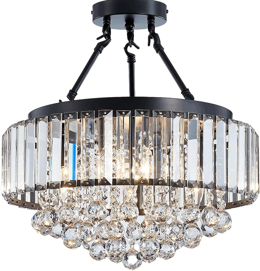 This elegant modern chandelier features a sleek black metal frame combined with layered clear crystal and glass elements that beautifully reflect light. The circular design creates a luxurious focal point while delivering soft, ambient illumination. Perfect for contemporary interiors, this chandelier adds sophistication and style to living rooms, dining areas, bedrooms, or statement spaces.