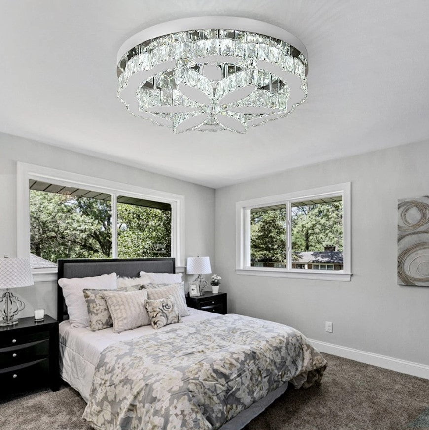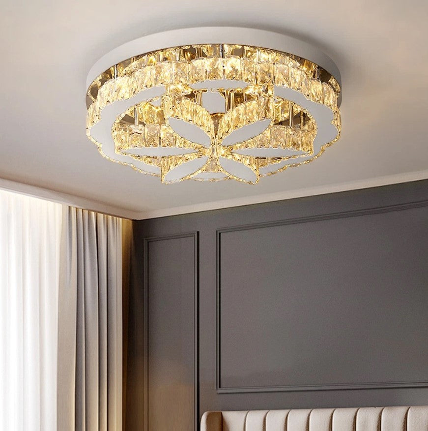 This modern crystal ceiling chandelier features a sleek stainless steel frame accented with sparkling crystal elements, creating a refined and luxurious look. Designed with a dimmable lighting system and remote control, it allows you to easily adjust brightness and switch between different light modes to match your mood or setting. Its elegant floral-inspired design and soft illumination make it an ideal choice for living rooms, bedrooms, dining areas, or other contemporary interiors, combining style, comfort, and convenience in one stunning fixture.