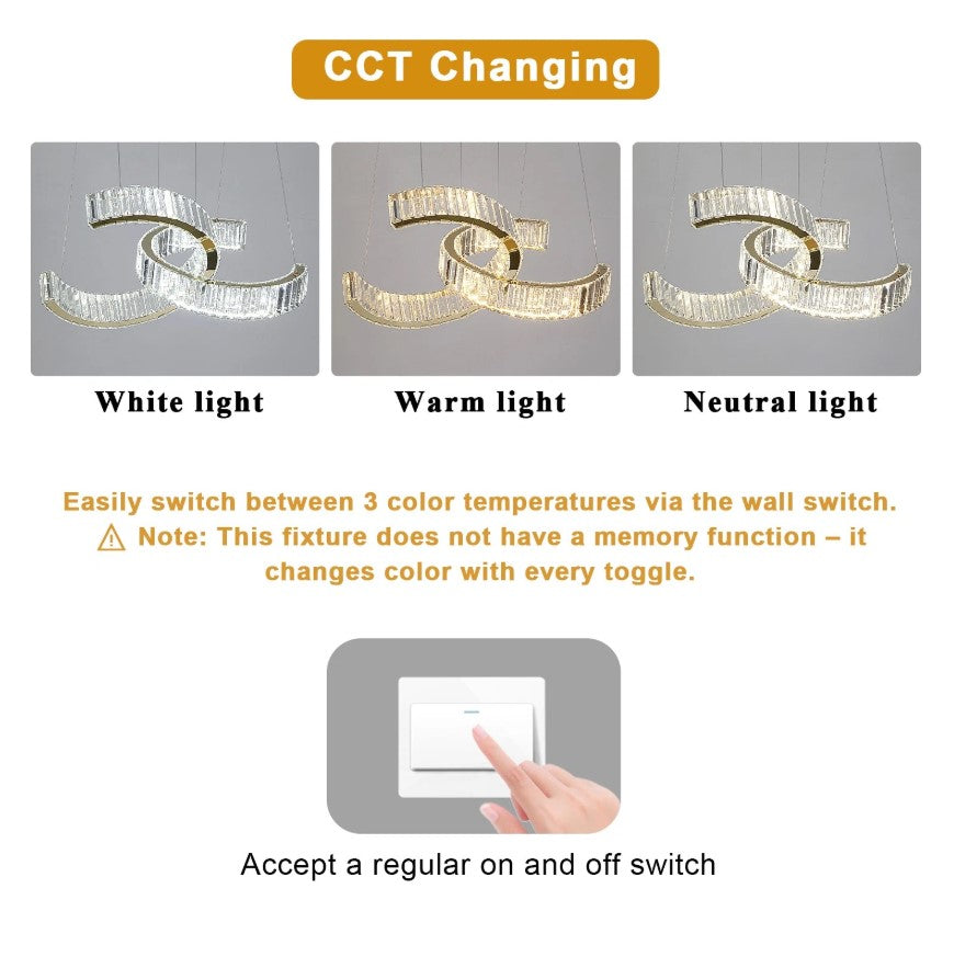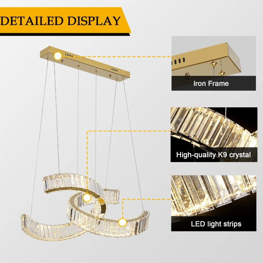 This modern and stylish chandelier creates a luxurious ambiance, adding warmth and elegance to any room in your home. Crafted with professionally cut and polished crystals featuring smooth, clear edges, it delivers a stunning interplay of light and shadow that fills the space with a mesmerizing glow. Equipped with energy-efficient LED light sources with a long lifespan, it provides stable, high-quality illumination while reducing energy costs. Blending minimalist design with contemporary flair, this chandelier complements any décor and enhances the beauty of your living space.