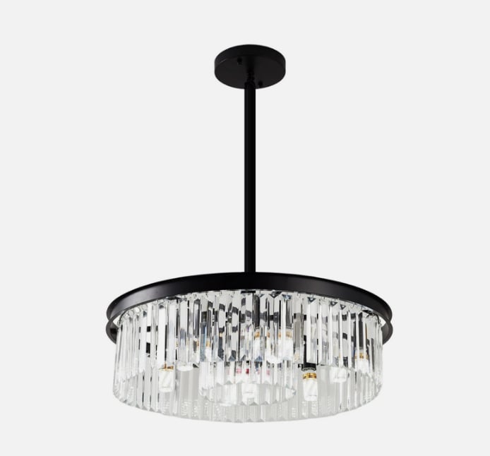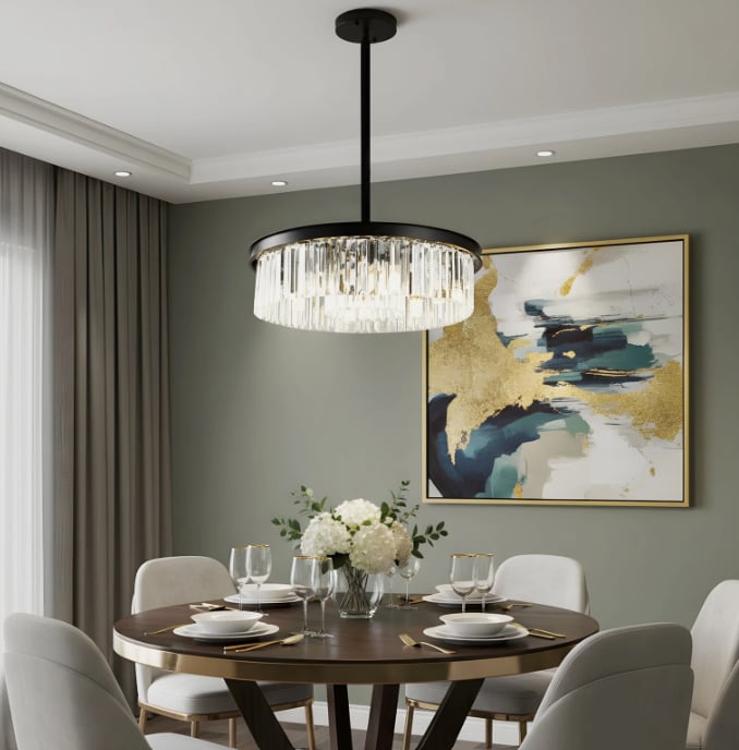 This elegant crystal pendant ceiling light features a sleek matte black metal frame combined with clear faceted crystal elements that beautifully reflect and refract light. The circular design adds a touch of modern luxury, making it a perfect statement piece for contemporary interiors. Designed to enhance both ambiance and functionality, this pendant light delivers warm, sparkling illumination and elevates the overall look of living rooms, dining areas, bedrooms, or hallways.