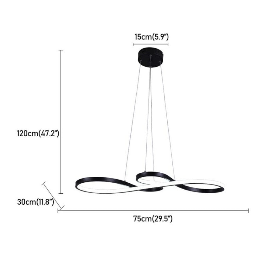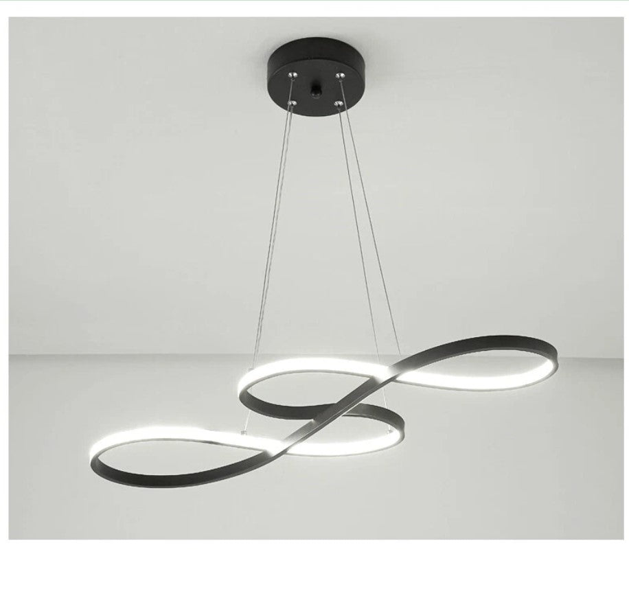 This contemporary LED ceiling chandelier features a high light-transmission acrylic ring combined with a high-quality LED light source, providing bright cool white illumination, low energy consumption, and excellent heat dissipation. The stainless steel ceiling base is durable and resistant to rust, ensuring long-lasting stability. Inspired by the elegant shape of musical notes, the modern design creates a comfortable and relaxing atmosphere. The chandelier is available in black, offering a sleek and minimalist look that fits perfectly into modern interiors.The light comes with all necessary installation accessories and a user manual for easy and direct installation. With its clean aluminum-style finish and contemporary design, it is ideal for offices, kitchens, living rooms, corridors, bedrooms, lobbies, basements, entertainment rooms, and laundry areas.