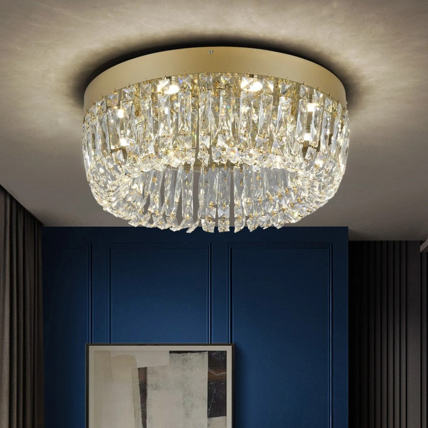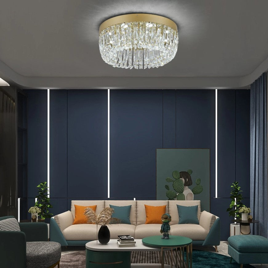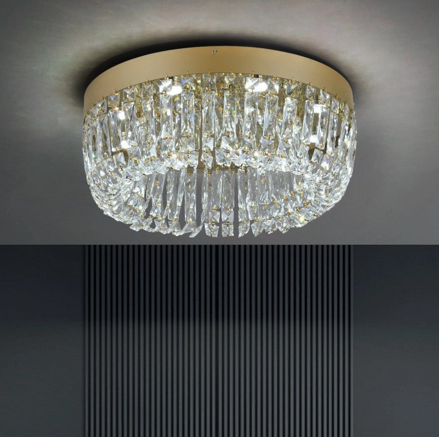 This modern crystal ceiling light combines refined craftsmanship with contemporary elegance, creating a luxurious focal point for any interior. Made from premium crystal and durable stainless steel, it delivers brilliant light refraction that fills the space with a sparkling, sophisticated glow. The sleek flush-mount design makes it ideal for both low and standard ceilings, while its timeless style enhances living rooms, bedrooms, dining areas, and upscale commercial spaces. Designed to offer beauty, durability, and versatile lighting, this fixture brings a perfect balance of function and modern luxury to your home.