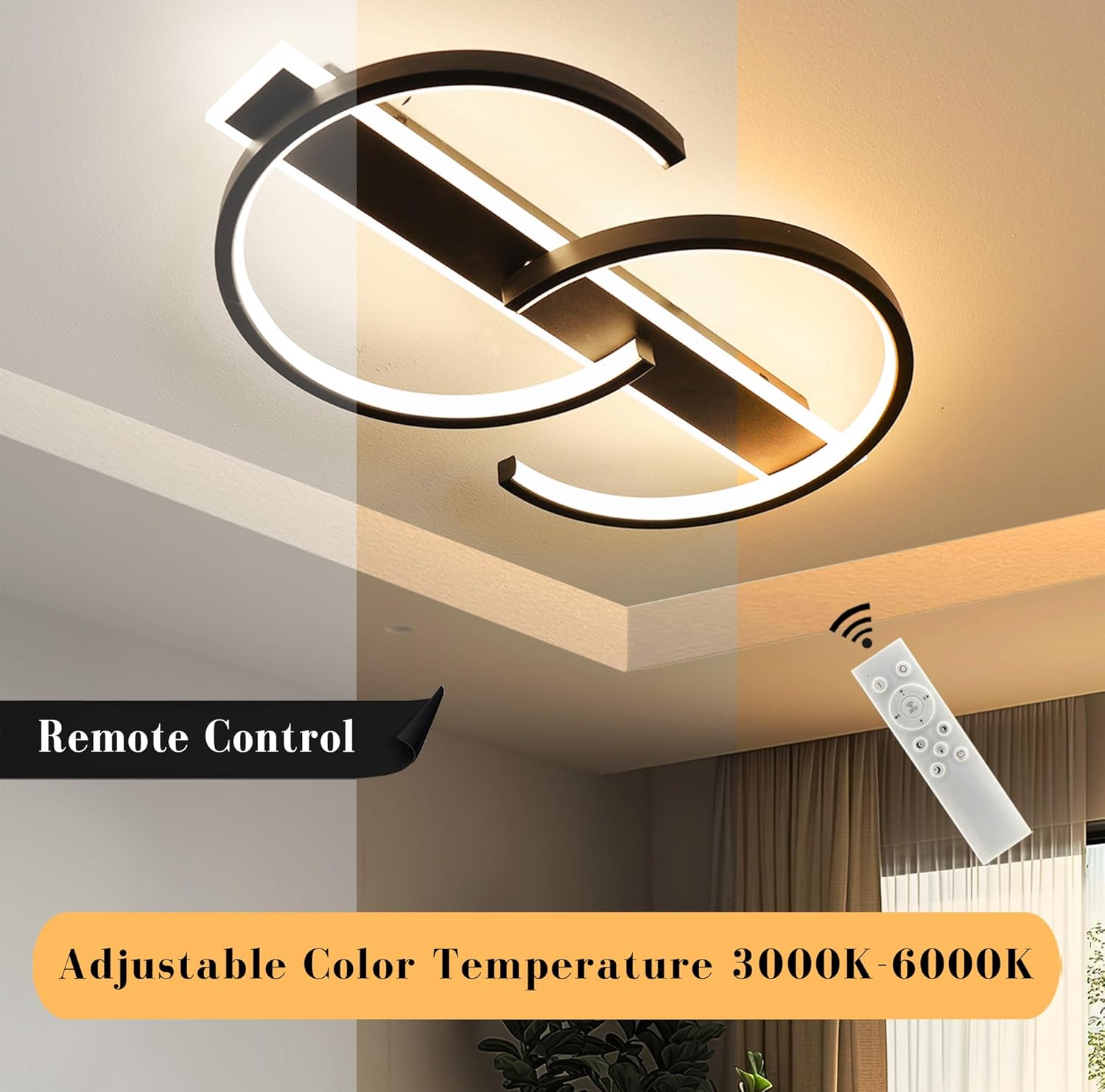 Creative geometric design, double round lamp body shape, unique and beautiful. Classic black, versatile color matching; thin and simple lamp body, modern style ceiling light. The soft light and round lamp body fill your bedroom with fashionable colors and a warm lighting atmosphere. The black ceiling light is equipped with a remote control that can adjust the color temperature (3000k-6000k) and brightness (1%-10%). Warm light 3000K has a relaxing effect, neutral light 4500K has an activating effect, and white light 6000K promotes concentration. Different color temperature and brightness ranges can provide you with different spatial atmosphere experiences.