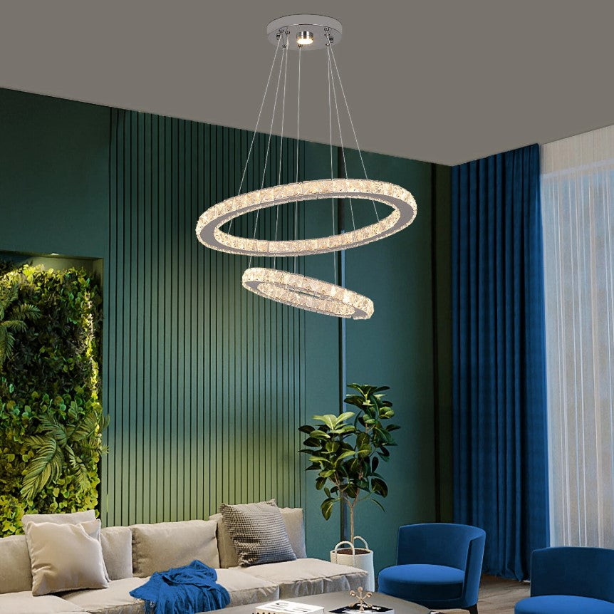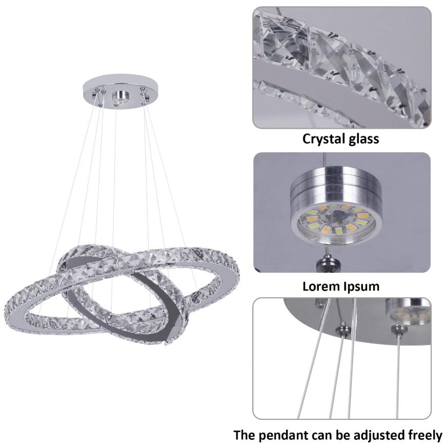 This modern ring chandelier features precision laser-cut detailing with sharp, clean edges that create a stunning visual effect under light refraction. Designed for contemporary interiors, it offers a stylish and artistic presence. With adjustable rings measuring 30 cm and 50 cm in diameter, this chandelier allows you to DIY your own unique shape—whether symmetrical or irregular—for a truly elegant and eye-catching décor statement.