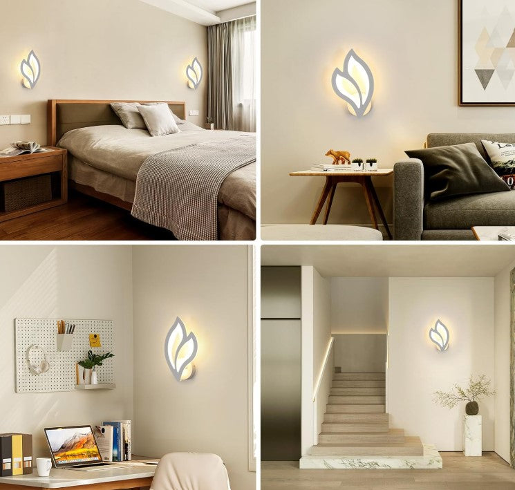 The indoor LED wall light is designed in leaf shape, with elegant and stylish appearance, creating a warm and romantic atmosphere. This curved wall light can add elegance to your home decor. High quality LED chips + high translucent acrylic lampshade create a beautiful soft but bright enough light. Good light transmission, no glare, energy saving, no flash and eye protection. This elegant LED wall light can have a good decorative effect, it is suitable for a wide range of scenes, such as balcony, hallway, living room, dining room, bedroom, staircase, entrance, children's room, kitchen, office, study, balcony, etc.