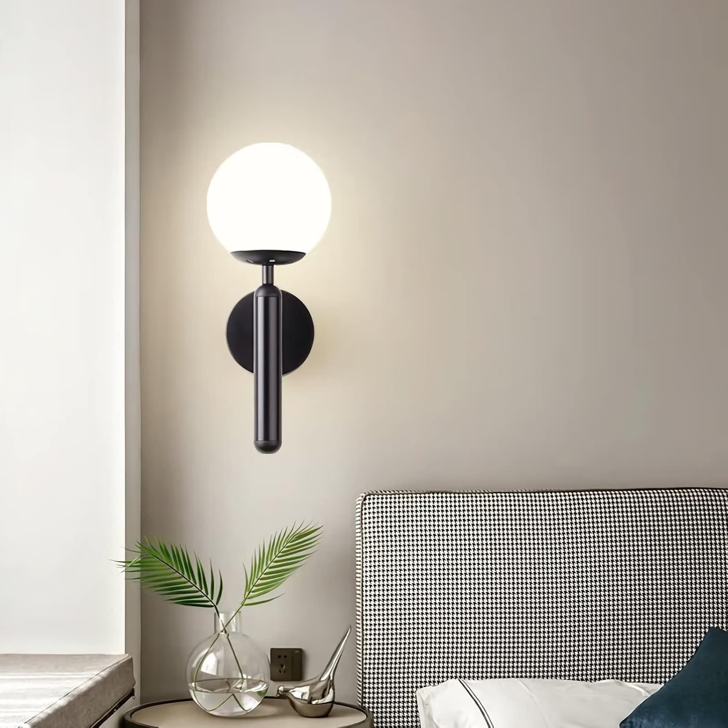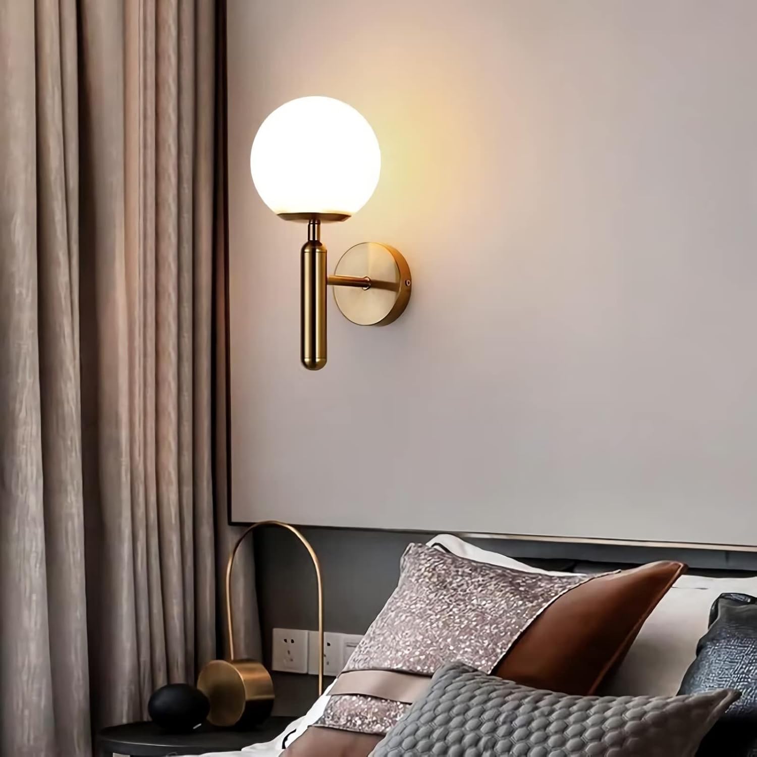 Elevate your interior with these elegant modern wall sconces, featuring a minimalist design and a warm, ambient glow. Each sconce is crafted with a sleek cylindrical arm and a round backplate, paired with a frosted glass globe that diffuses light softly and evenly. Available in two stylish finishes—matte black for a contemporary look and brushed gold for a touch of luxury—these fixtures are perfect for bedrooms, hallways, living rooms, or any space that needs refined lighting. Their simple yet sophisticated form blends seamlessly with both modern and classic interiors.