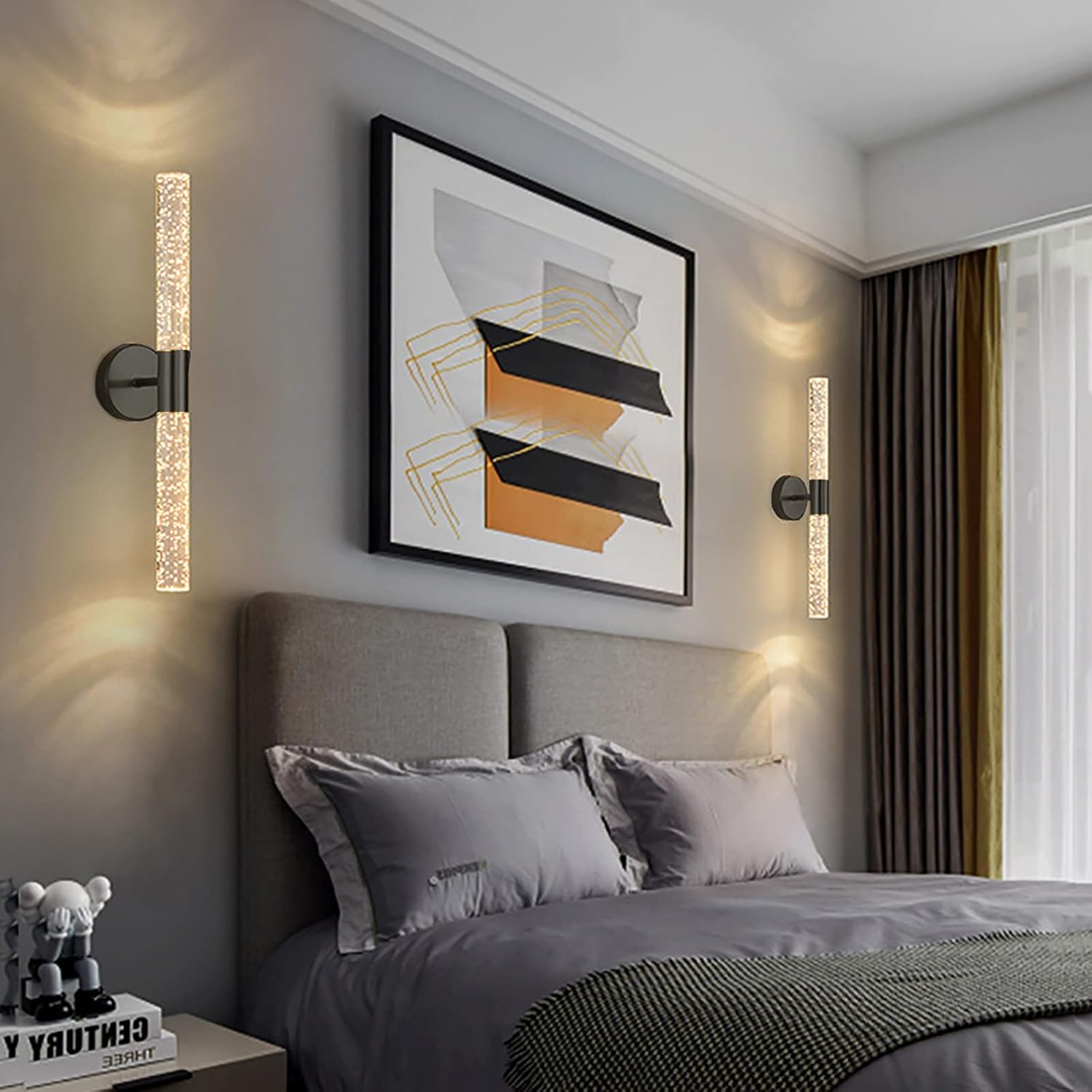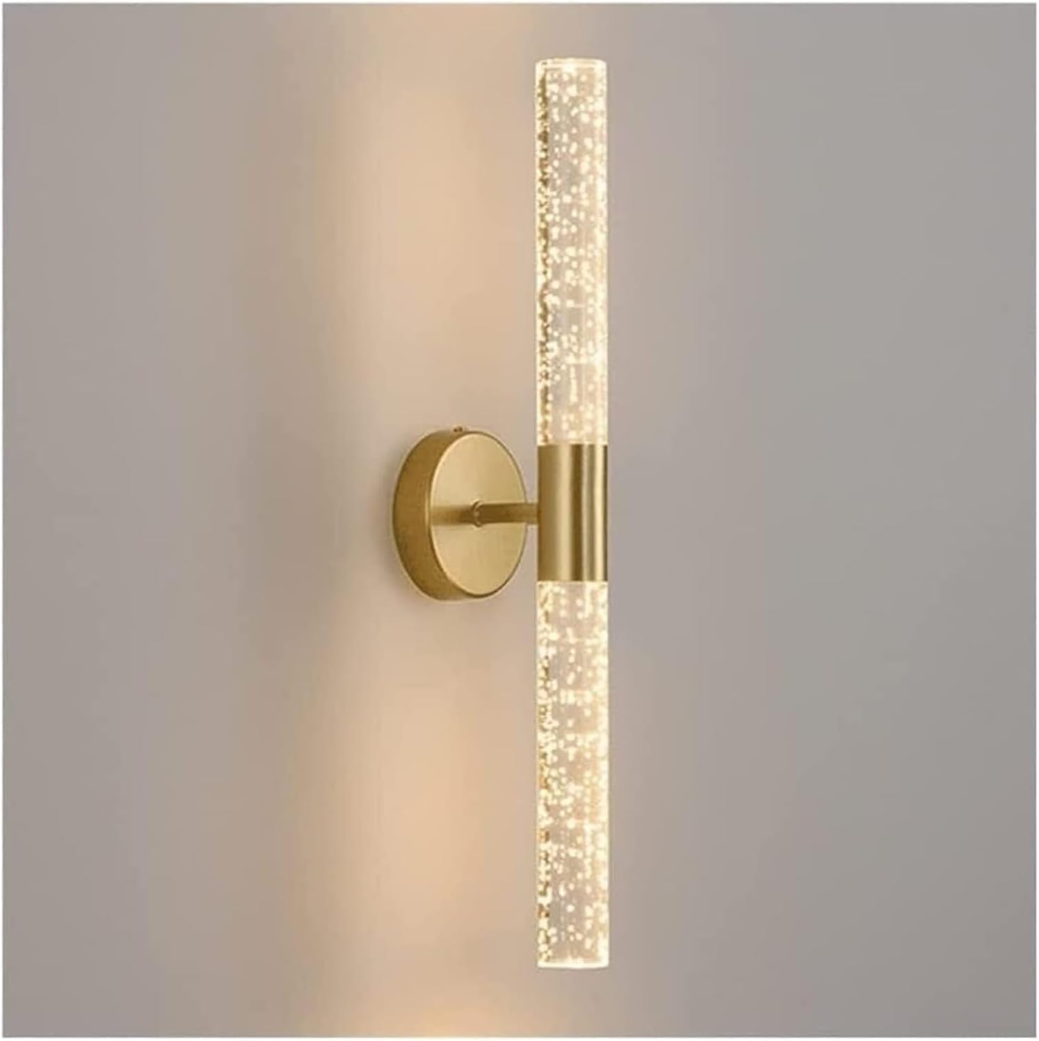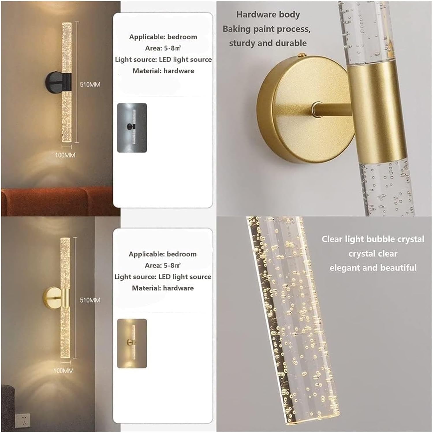 This Nordic style crystal wall lamp has a cylindrical design. The beautiful white bubbles in the clear crystal shade make this crystal wall light look very dreamy. Can be used as a beautiful wall decoration to decorate your home. The lampshade of this indoor wall lamp is made of high-quality crystal material, with high light transmittance, and the wall lamp body is made of high-quality aluminum material, which is anti-rust, anti-oxidation, anti-corrosion, and is easy to install and firm, saving space. Add a stylish and romantic vibe to your home with our elegant crystal wall sconces.