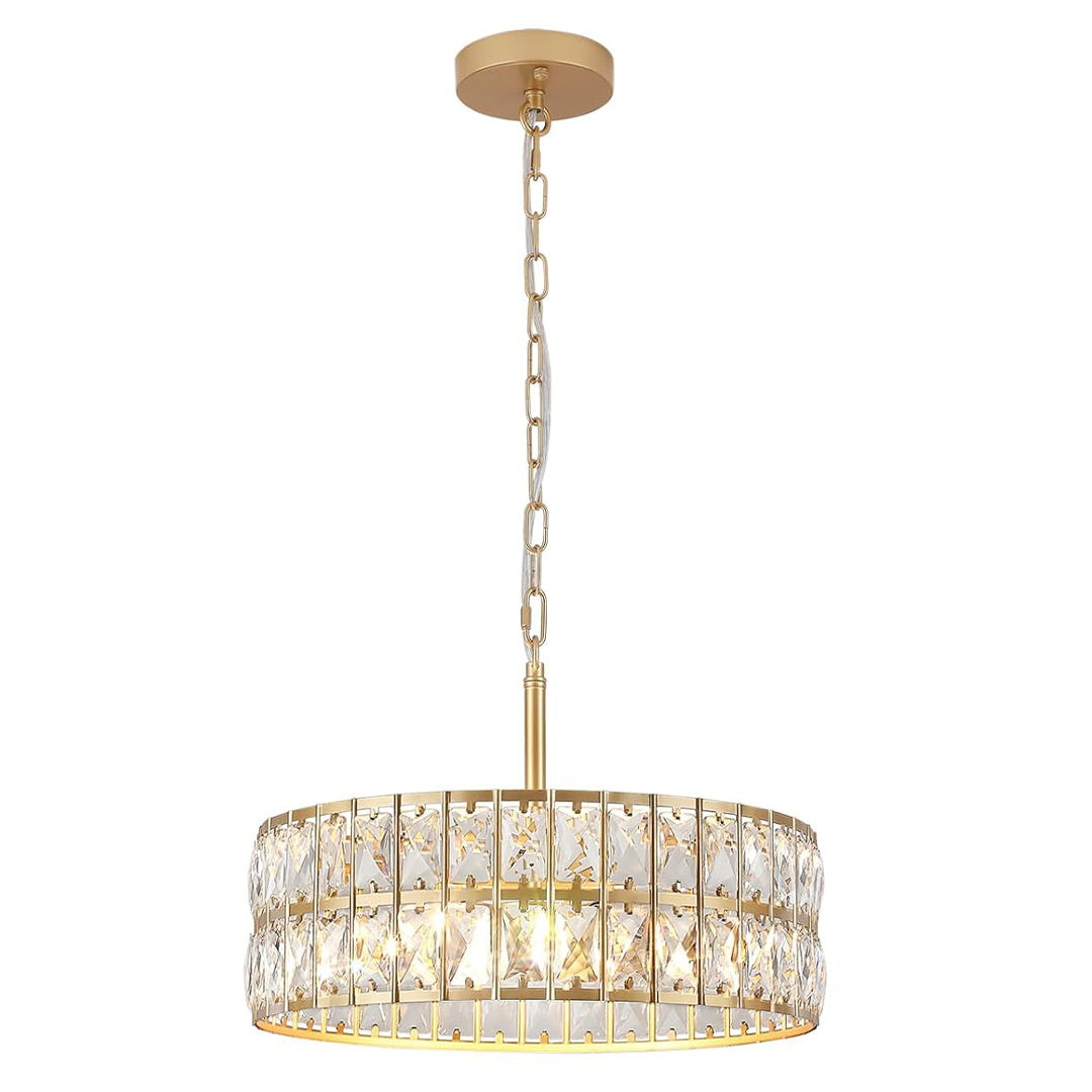 The modern crystal pendant light is the excellent combination of metal and K9 prismatic crystal, each crystal will reflect the whole light very sparkling and creates modern and spectacular look, matches most styles of furnishing and adds a beautiful decor to your home. The luminaire can be adjusted to various heights, offering flexibility for installation at different ceiling heights. This gold chandelier light fixture comes as two in one convertible light, which can be used as both hanging pendant light or semi flush mount ceiling light, perfectly fit to your ceiling heights, it also suitable for sloped ceiling. Suitable for a variety of spaces such as bars, lounges and hotels, making it ideal for improving the atmosphere and decoration.