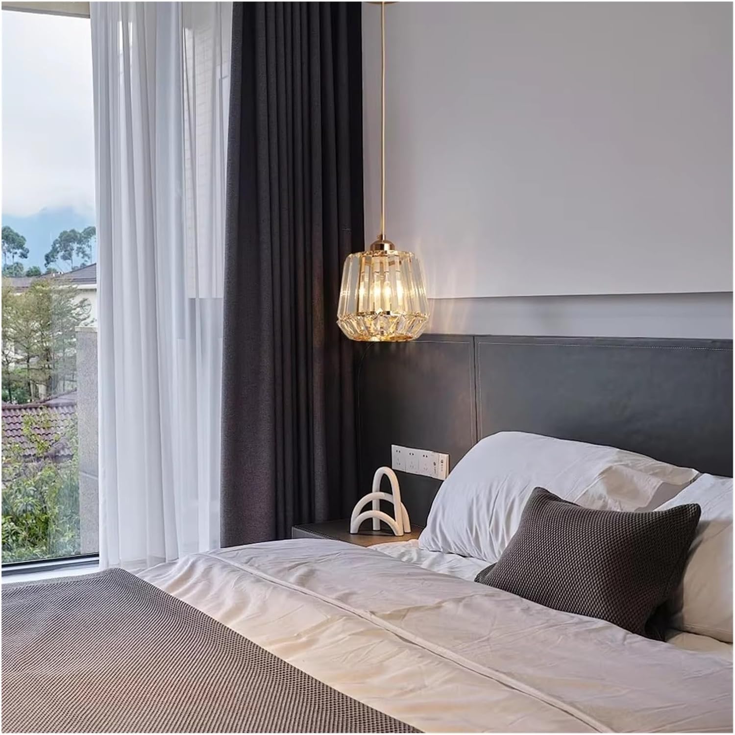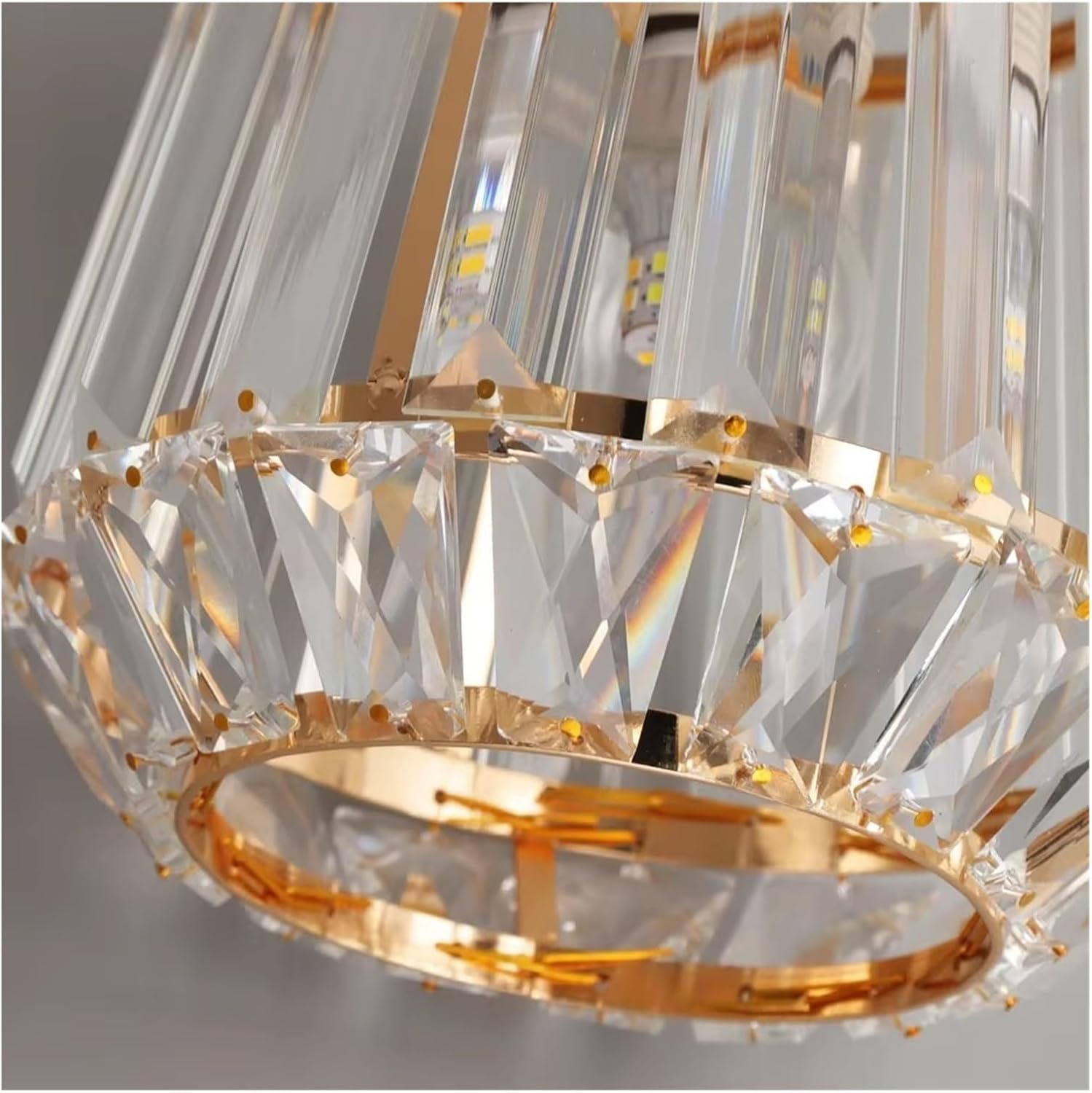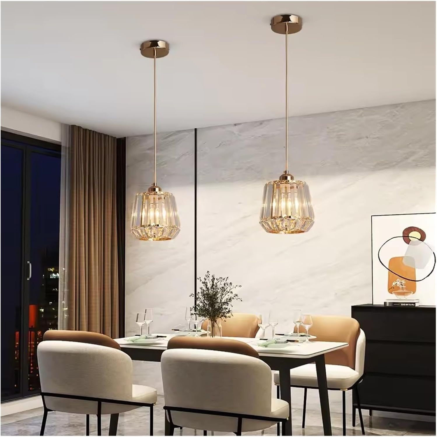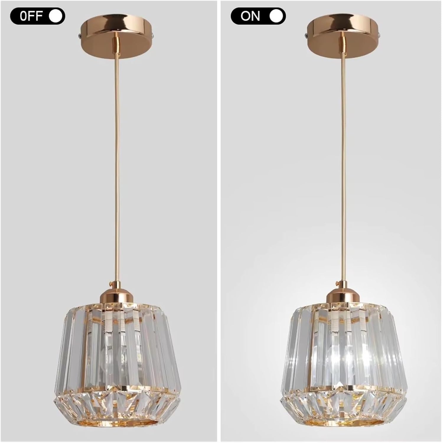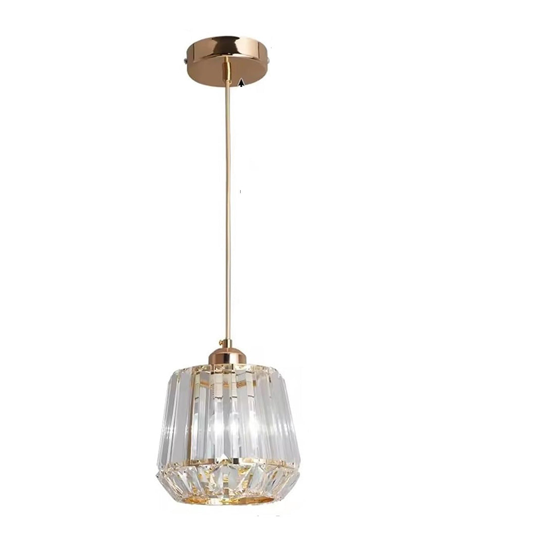 This modern crystal pendant light features a refined gold finish combined with clear crystal elements that beautifully reflect light. The adjustable hanging cord allows you to customize the height to suit your space, making it perfect for kitchens, dining areas, bedrooms, hallways, and stylish commercial interiors. Its elegant design adds a touch of luxury while providing warm and ambient illumination.