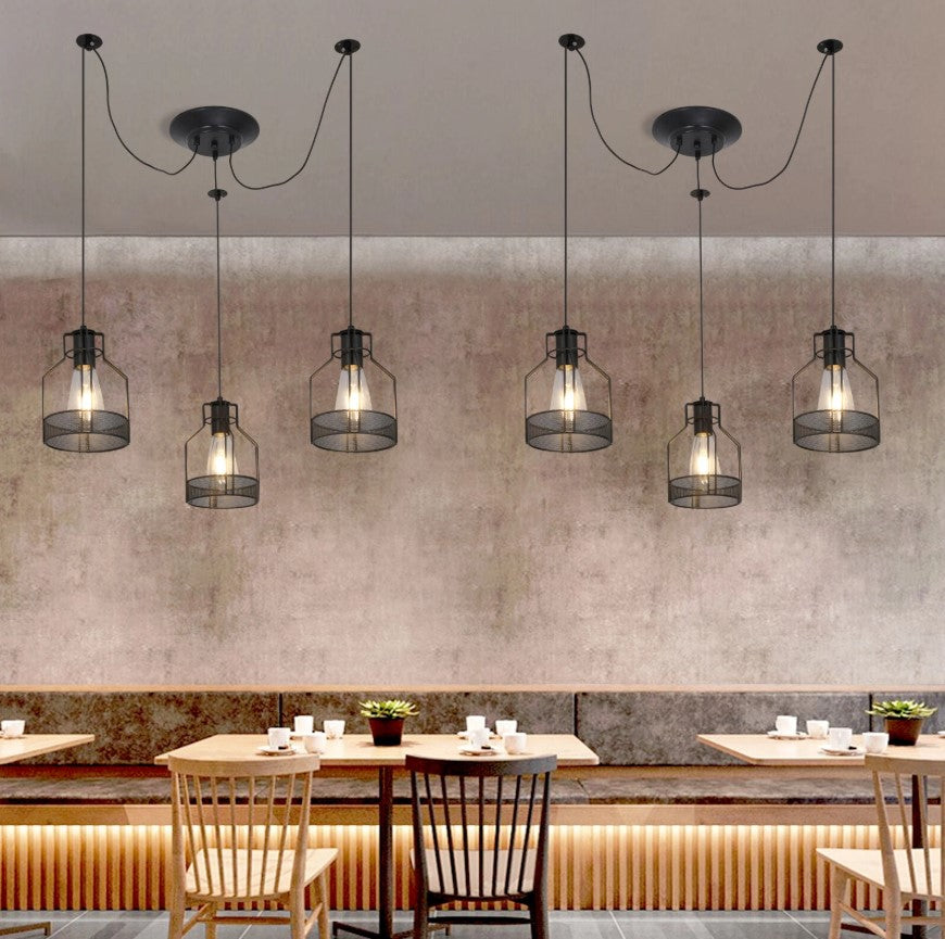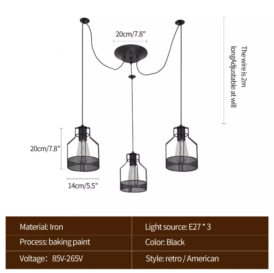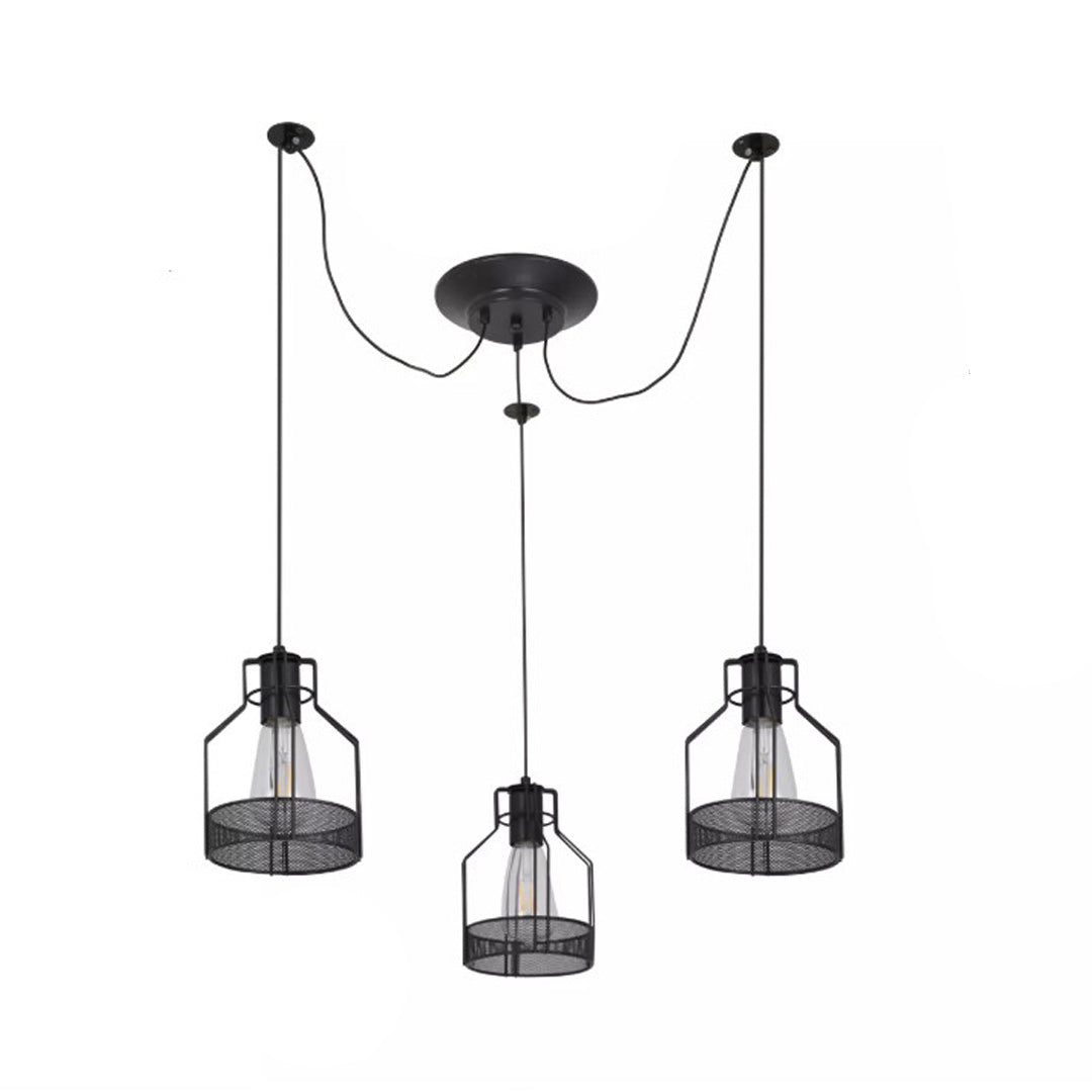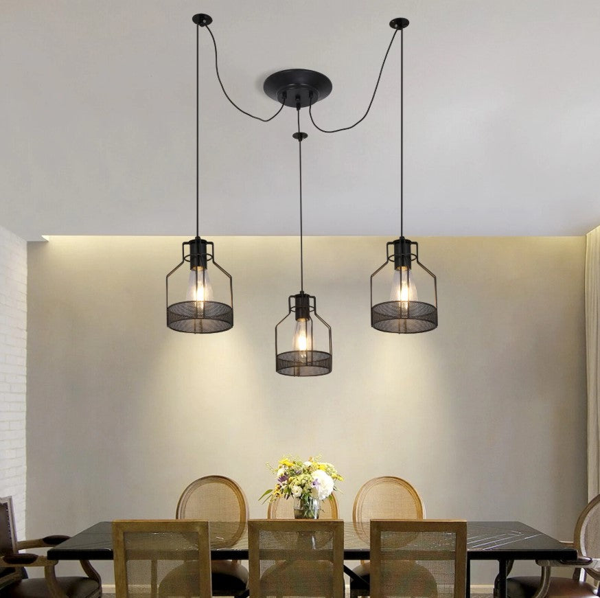 This retro-style pendant light brings a bold industrial touch to any interior. Featuring a black iron frame with a mesh cage design, it combines vintage American aesthetics with modern functionality. The adjustable hanging wires allow flexible installation, making it perfect for dining rooms, kitchens, cafés, bars, or loft-style spaces. Designed for three E27 bulbs, it provides warm and stylish illumination while serving as a striking decorative element.